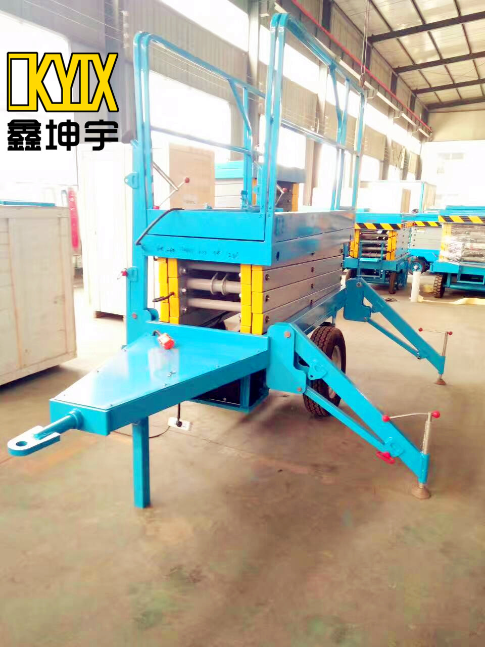 该升降机可以使用车辆牵引移动,实现快速移动升降机