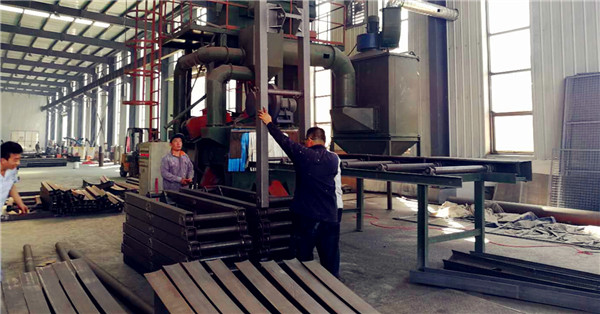 鑫坤宇自行式升降机流水线应用大型抛丸机